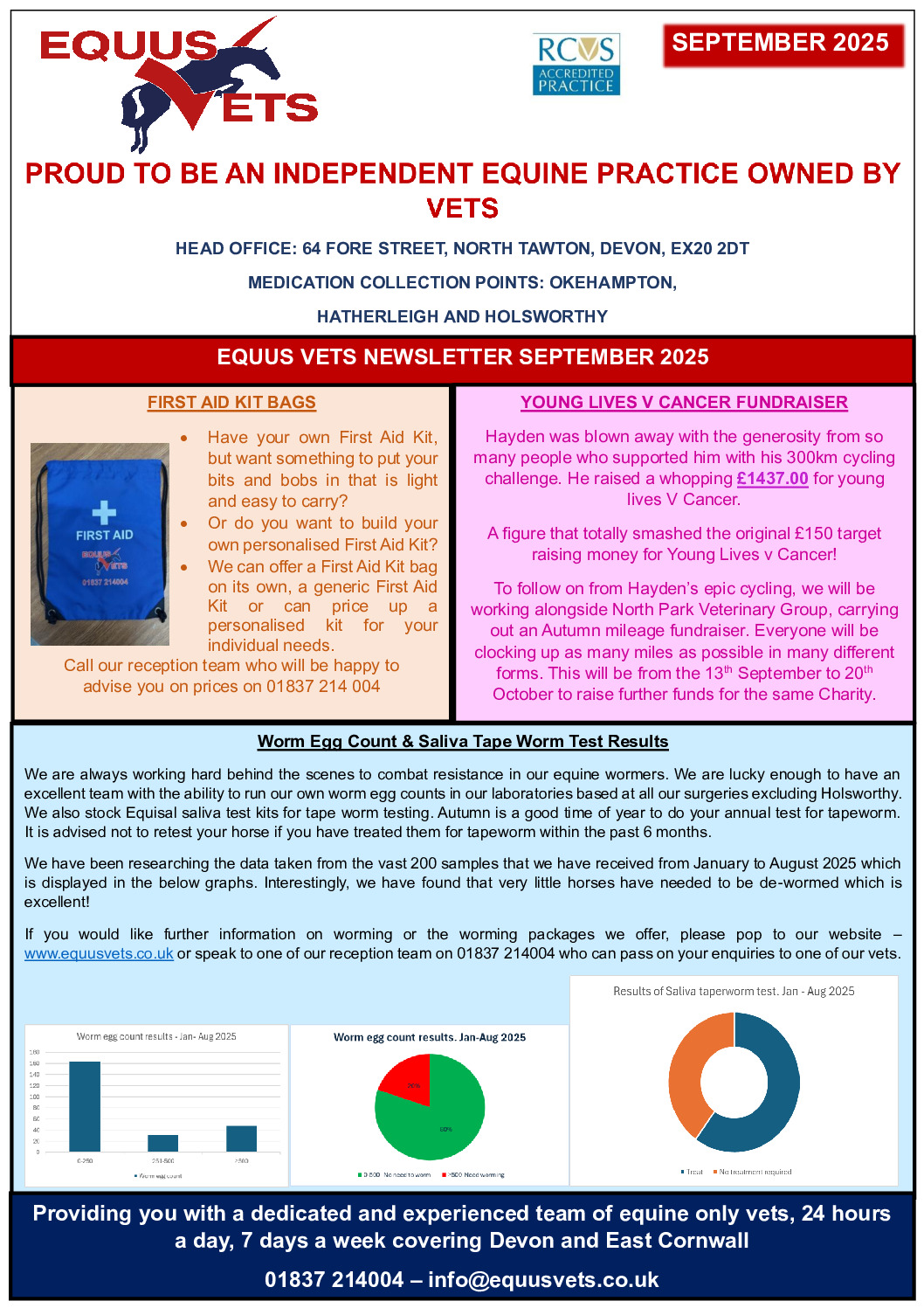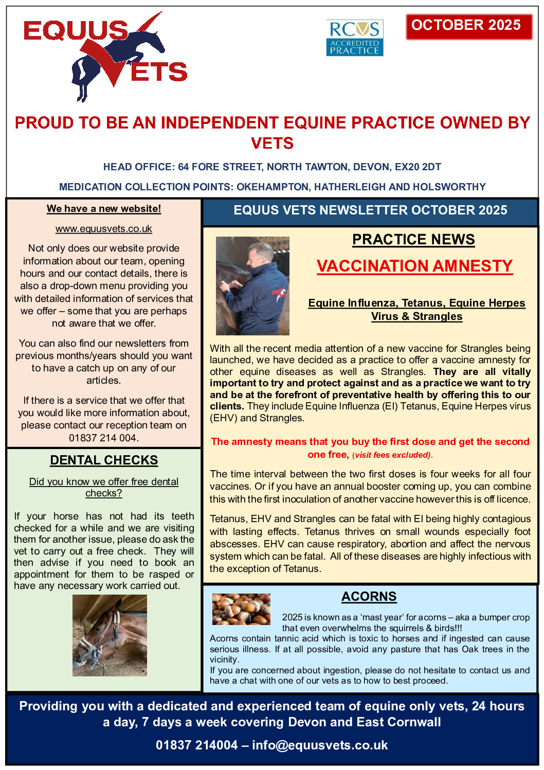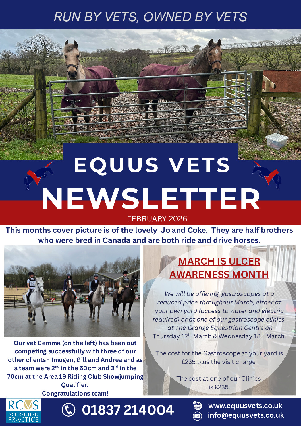 We are now doing monthly newsletters to fill you in on whats new at Equus Vets. In our newsletters we will also inform you of any upcoming events and any topical information which may be useful.